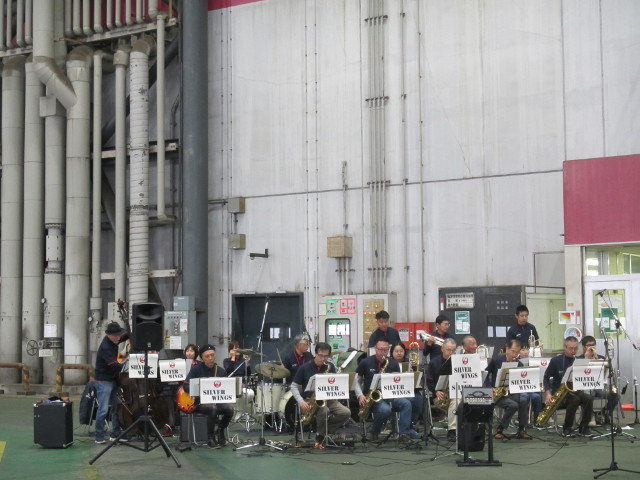 JAL職員家族の感謝デー 今年はあいにくの雨と寒さの為、人手は少ないような・・・ 国際線機内食を購入できました。(家でゆっくり昼食) シャッターは閉められ、食事ができるようにテーブルが工場内に設置。 音色が良く響いていました。 子供達には、紙飛行機が人気・・・ 11/9 |