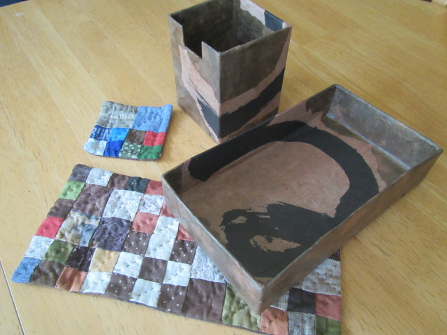 途中作品小を貼り付け・・・ バラバラにし、大・中・小のコースター? |