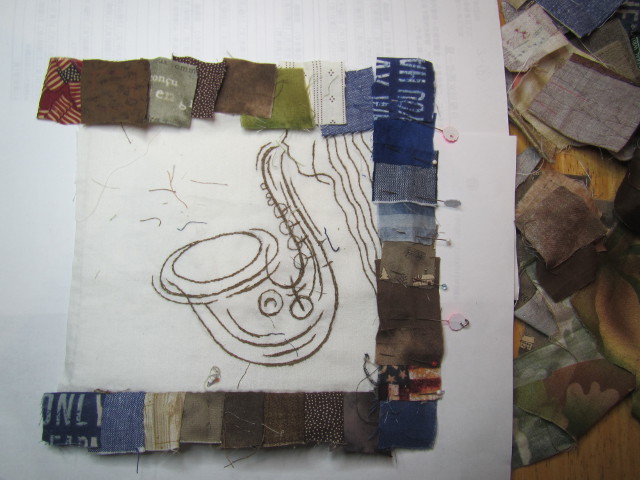 小さなハギレ整理中予定変更・・・ 2cmの四角繋ぎでボーダー作り 21x21cmに仕上げ、キルティング