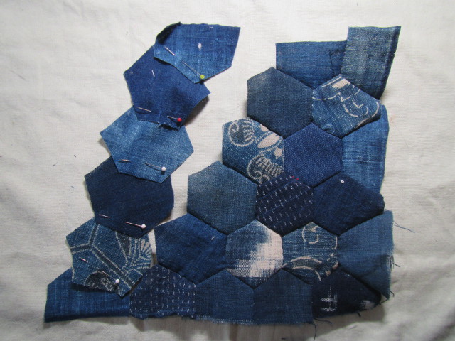 カットした残り布を利用して1辺が2・2cm六角形を繋ぎ合わせ・・・ 16・5cmx36cm |