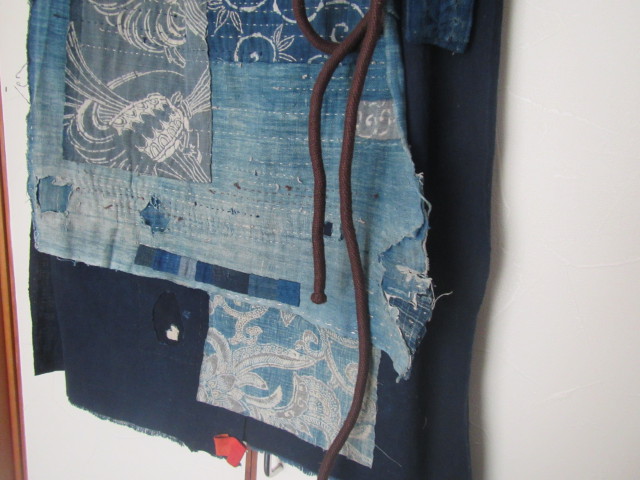 刺し子 糸巻き 21x27cm デザインの配置により変化 難しい・・・ 遊んでみました。 ポケットを付け、くくり花を飾り付け サイドに糸巻きを利用した型染めコレクション。 私には使いにくかった手作り菜箸利用・・・ |