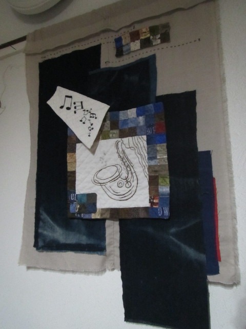 壁掛けとペアで縦長のキルトを予定していました。 壁掛けだけで満足(85x70cm)・・・ 布整理で途中パターンが出てきました。 再開・・・ 6cmの4種類のパターンを2列(33枚・三角2枚) 部屋の床に出来上がったパターンを並べ、茶系の布をカット。 パターン作りが終わり、茶系布の配置変更・・・ 様子を見に部屋を覗くのも気分転換になりました。 ボーダー 5cm 146x26cm完成 裏は、古布。 傷んでいる部分の補修作業をし、袋仕立て