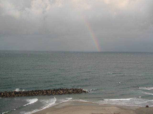 雨の1日でした。 夕日をみながら海岸にある露天風呂 残念・・・引き潮でした。 湯あみ着を着るようになっていました。 |
