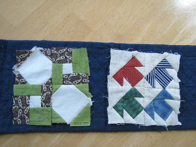 娘が中学の家庭科で、つくった浴衣の無地部分と藍のハギレで・・・ 藍 2cmの正方形 36枚 中心部分 30x30cm完成 角を縫い合わせて、42x42cm に・・・ 2枚予定・・・ コースター (11x15cm) ハギレを利用し、量産中・・・ |