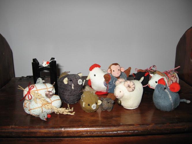 【ちりめん細工】 『 日本から今年の干支が届きました。』 ワクワクしながらデジカメを持って訪問。 アメリカで、ちりめん細工に出会えるとは・・・・・ そして、私が作るとは・・・・想像もしていませんでした。 彼女が日本帰国・・・という事で、改めて写真を撮らせて貰いまとめてみました。 ステキですね。 ぬくもりがありますね。 彼女のお母さんは、ちりめん細工を始めて10年?のベテランさんです。 さすが・・・使っている布が違いますね。 『渋くて素敵!』1番最初に目に入ったのは布でした。 上手に縫い合わせても、布選び方でイメージが変わります。 やはり・・・ちりめん細工は古布かな? ステキな出会いに感謝致します。 ありがとう・・・・ |