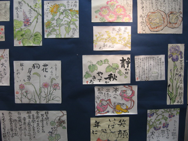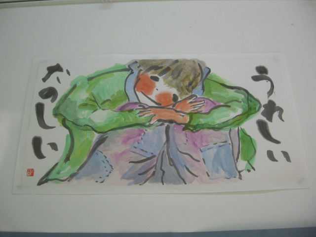 草木染めの展示会場に行く途中立ち寄った美術館で・・・ 養護施設の作品が目に留まりました。 色使いが違いましたね。 絵手紙の顔の表情に心が和みました。 (裂き織り・木をスライスしたコースターを購入。) |