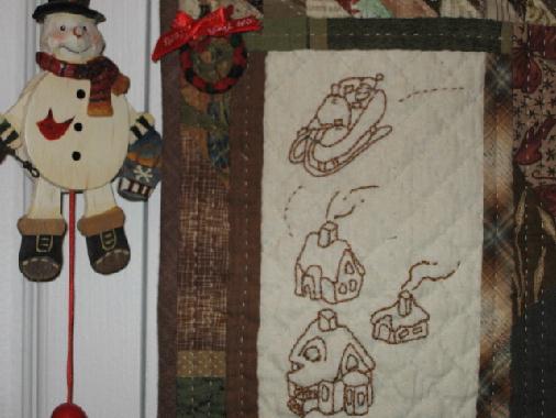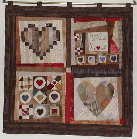 ボーダーは、ミシンでクレージーログキャビンを作り、剥ぎ合わせました。