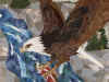 まで引越しのため車で移動。 6日間で3,600マイル走行・・・ 途中グランドキャニオンを北と南の両側から探訪し、アメリカの広大な自然を堪能。 グランドキャニオンのイメージを鹿を刺繍することで表現してみました。 (カナダとの国境線) 宿泊した場所をボタンで留め、タコ糸を巻きつけてドライブコースに・・・ アドバイスを貰い、炊飯器・クーラーボックス・レトルト食品・・・などを車に詰み込み出発!、まるでキャンプ生活のようでした。 瓶にいれてきた数種類の漬物がとても美味しかった・・・日本人ですね。 一週間とてもすばらしい経験をさせてもらいました。 送別会で冗談に言った一言が現実に・・・ この計画、周りの知人の方が楽しんでいた? そんな思い出がたくさん詰まっています。 今度は、GA,Peachtreeに引越し、2400マイルドライブ。(2002/7/31~8/3) (70 X 84cm) |
