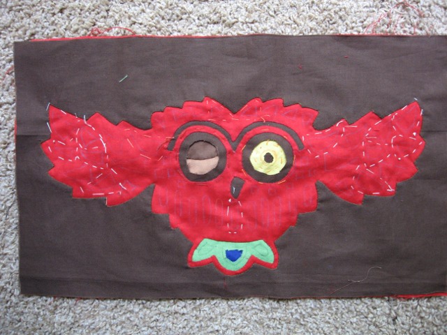 福を呼んでくれるかな? 輪郭を付けずに布にミシンで貼り付け。 |