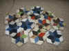 バックに使うプリント生地を1・5ヤード購入。 カットの仕方で遊ぶ事ができます。 24cm・18cm・12cm・9cmのパターンを作り・・・ 配置を決め、隙間を埋めてまとめ作業。 選別した屑布で1・5cm 2cm 3cmの四角繋ぎで繋ぎ合わせ・・・ 93x78cm |