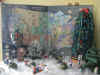 途中作品を日本から持ってきました。 むら染めの布で葉をアップリケ・・・ 公園で見かける微笑ましい光景になりました。 |
